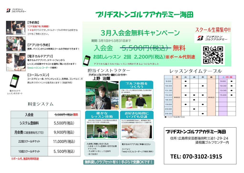3月は入会金(5,500円)無料キャンペーンを開催します。